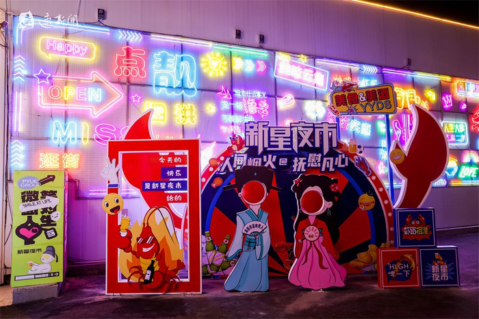 岳一争介绍,泗洪县青阳街道新星夜市于2023年底建成投用,占地面积约9000平方米。夜市涵盖34间沿街门市、28间餐饮大排档、6间创意集装箱,还有特色土菜馆、儿童嬉戏区及中心摊贩区,集餐饮、文创、亲子等多元业态于一体,已成为承载城市烟火气、提升市民幸福感的重要载体。